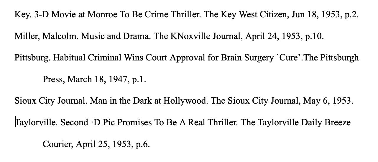Man in the Dark is a film about Steve Rawley, a criminal who gets his sentence pardoned because he submits to an experimental form of brain surgery meant to remove his criminal behavior forever. This film was made by Lew Landers and was released back in 1953 after being filmed, produced, and completed in just 11 days. It was one of the very first significant 3D productions by Columbia Pictures, one of the largest film companies. One article praised the “unbelievable new heights in three-dimensional realism” in the film (Sioux, 1953).